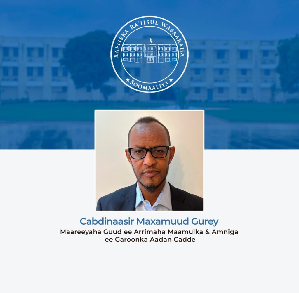 Ra’iisul Wasaaraha Xukuumadda Jamhuuriyadda Federaalka Soomaaliya Mudane Xamsa Cabdi Barre, ayaa magacaabay Maareeyaha Guud ee Arrimaha Maamulka iyo Amniga Garoonka Muqdisho iyo Agaasime Ku-xigeenka Guud ee Xarunta Qaran ee Tubsan.