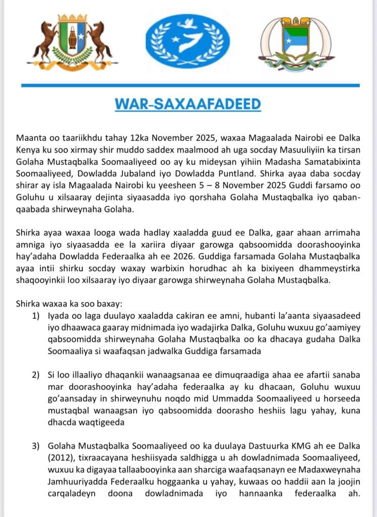 Warmurtiyeed ayaa laga soo saaray Shirka Golaha Mustaqbalka Soomaaliyeed ee lagu qabtay magaalada Nairobi ee dalka Kenya, Shirkan ayaa diirrada lagu saaray Ajandayaasha waa weyn ee Midnimo Qaran iyo Wadatashi.